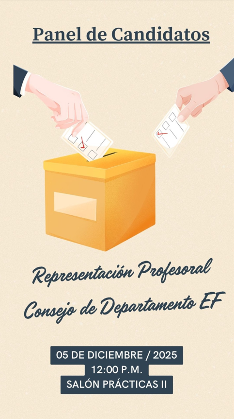 Panel de Candidatos aspirantes a la representación profesoral ante el consejo de Departamento de Educación Física.